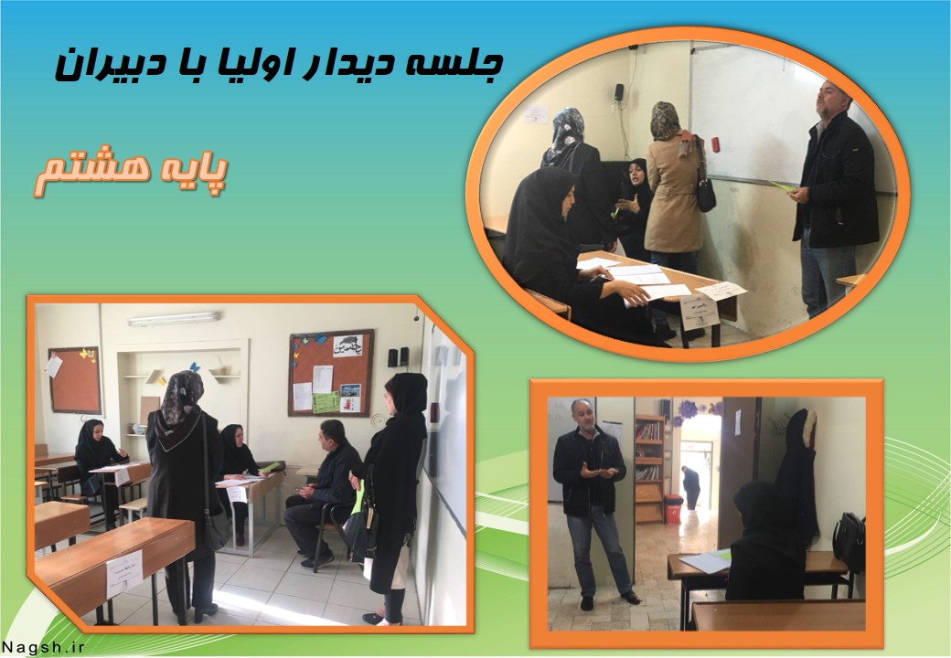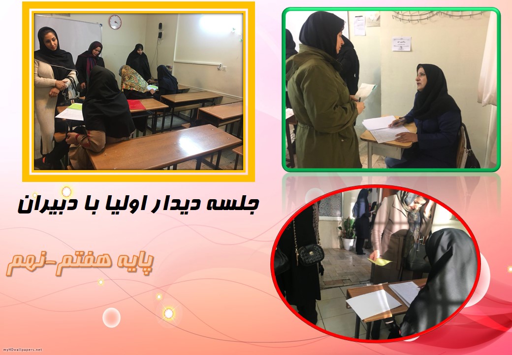 روز یکشنبه مورخ 96/9/5 از ساعت 14 الی ۱۶:۳۰ جلسه دیدار اولیا با دبیران در هرسه پایه در محل دبیرستان برگزار گردید. که در این جلسه اولیا در رابطه با وضعیت تحصیلی فرزندشان با دبیران به گفتگو پرداختند. کارنامه آذر ماه نیز تحویل اولیا گردید.