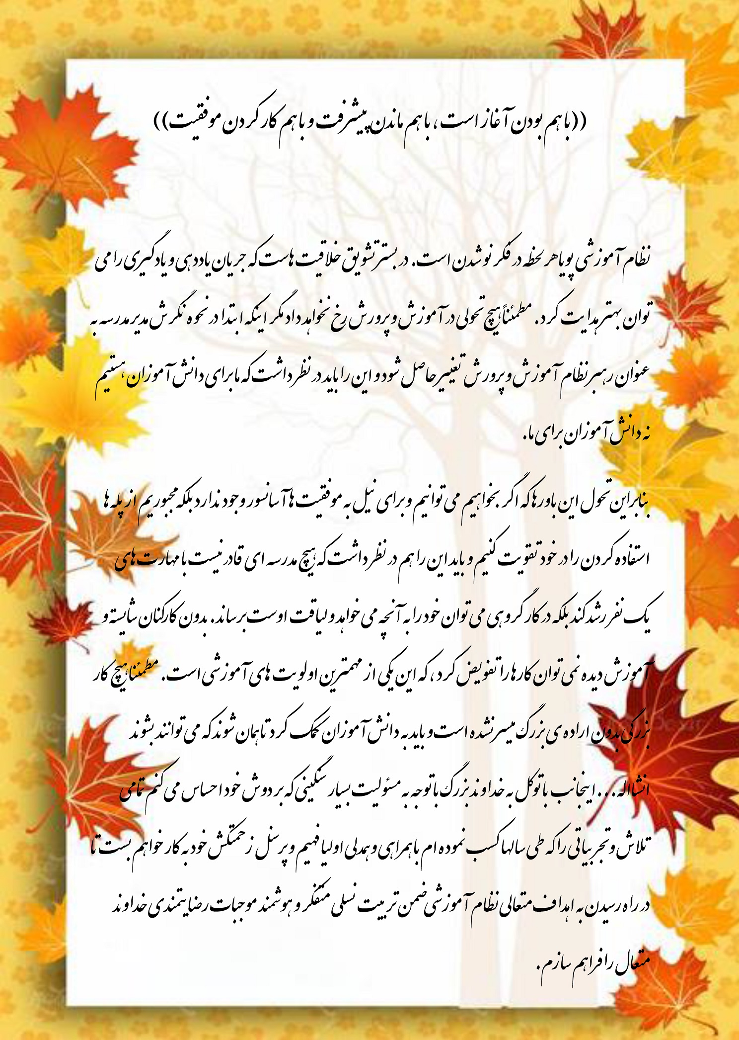 پیام موسس محترم به مناسبت بازگشایی مدارس
