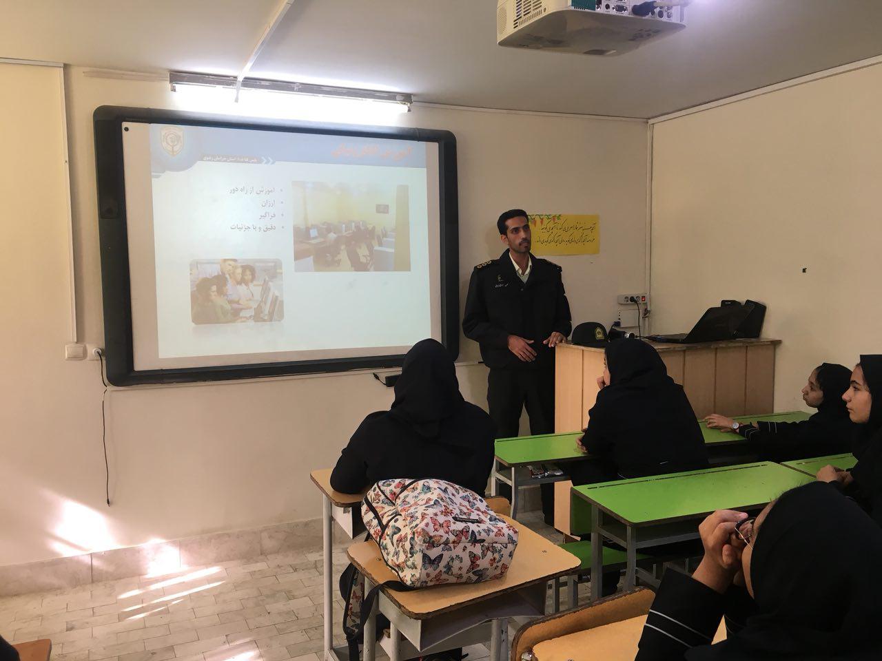 امروزه با توجه به نقشی که اینترنت و فضای مجازی در ابعاد مختلف زندگی افراد دارد نمی توان آن را نادیده گرفت. با توجه به اهمیت ارتباطات سالم در فضای مجازی و لزوم هوشیاری دانش آموزان نسبت به تهدیدات فضای سایبری از ستوان حروفی دعوت به عمل آمد تا در یک کلاس آموزشی در این خصوص برای دانش آموزان به ایراد سخنرانی بپردازند.