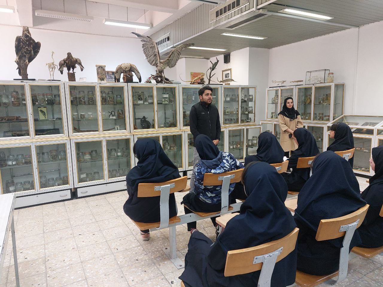 در ادامه، دانشآموزان از موزه جانورشناسی بازدید کردند. مشاهدهی مجموعهی گستردهی نمونههای جانوری تاکسیدرمیشده، اسکلتها، پرندگان، حشرات و پستانداران برای دانشآموزان بسیار جذاب بود. کارشناسان موزه توضیحاتی درباره طبقهبندی جانوری، محیطزیست، تنوع زیستی و اهمیت حفاظت از گونهها ارائه دادند.